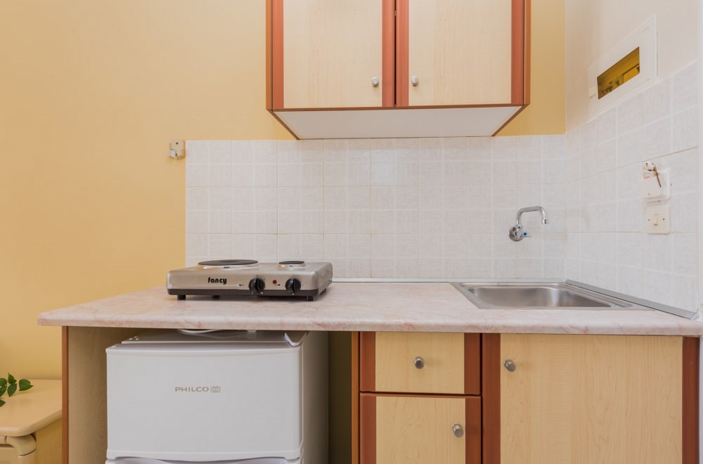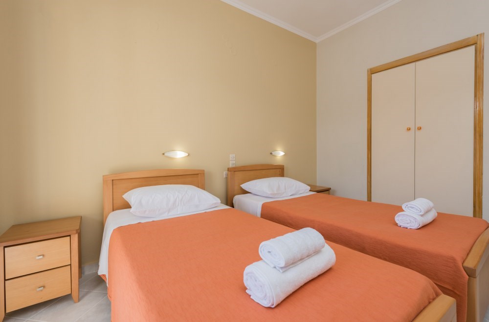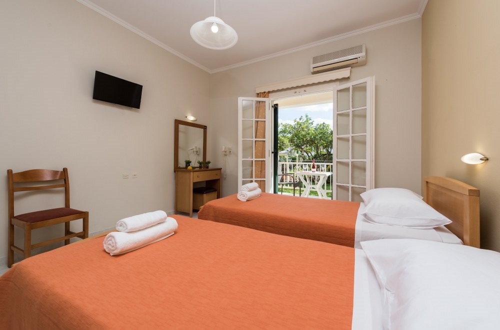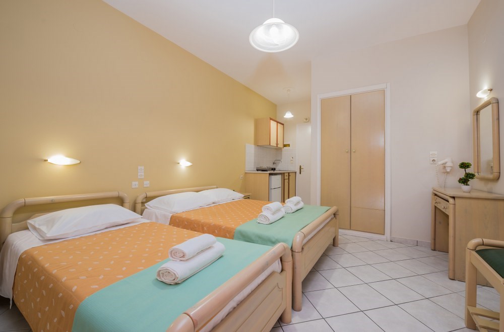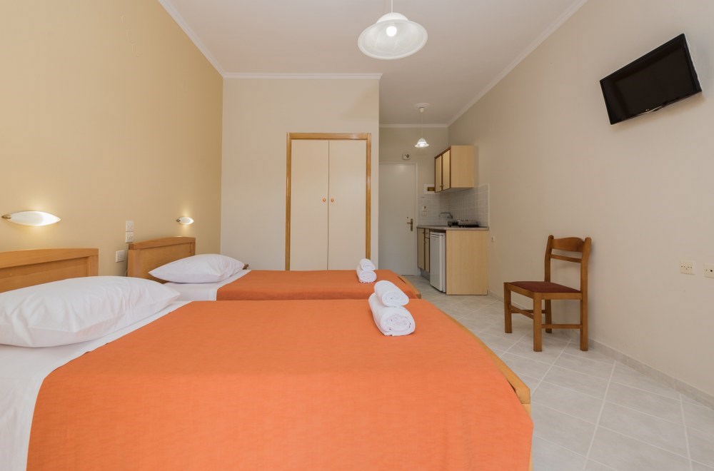 Olga Studios complex offers two studios. Both studios come with two single beds, that can also be joined into one queen sized bed. They have their own private balcony with garden view, bathroom with shower and small kitchenette equipped with all necessary cooking equipment. There is also air conditioning and Flat Screen TV.